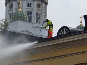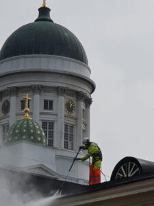 Helsingin yliopiston peltikaton pesu ja huoltomaalaus.